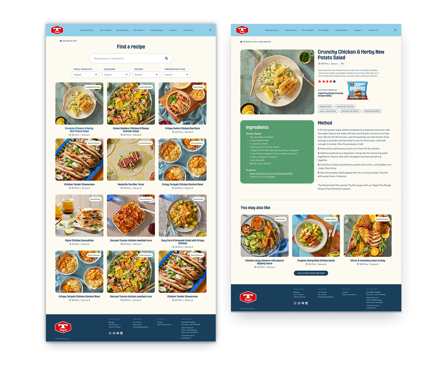 Tegel is New Zealand’s largest poultry business, with a proud history spanning more than 65 years. As a well-known household brand, the website needed to reflect Tegel’s scale and heritage while delivering a modern, intuitive digital experience for a wide and diverse audience.